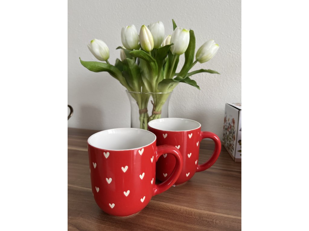 Červené hrnky se srdíčkem jsou malou připomínkou toho, že i obyčejné věci mohou být plné emocí a tepla, které domov dělají domovem.