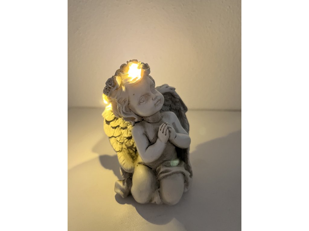 Po zapnutí LED osvětlení se soška rozzáří teplým, uklidňujícím světlem, které vyvolává pocit míru a duchovní pohody. Díky decentnímu provedení se hodí jako dekorace na hrob, ale i do interiéru pro vytvoření pietního a tichého koutku vzpomínek.
