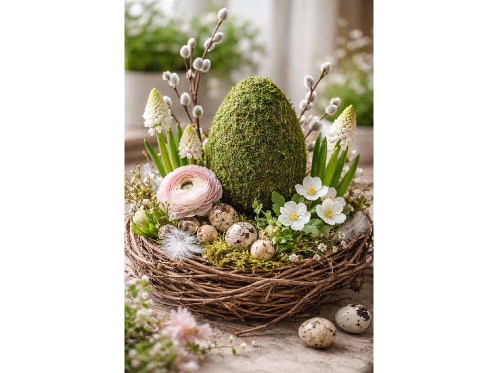 🎨 Tipy na stylová jarní aranžmá s mechovým vajíčkem