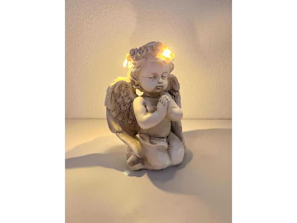 Uvnitř andílka je zabudované LED světýlko, které po rozsvícení vytváří teplé, uklidňující světlo. Tím dodává dekoraci hřejivý nádech a přispívá k důstojné atmosféře vzpomínky.