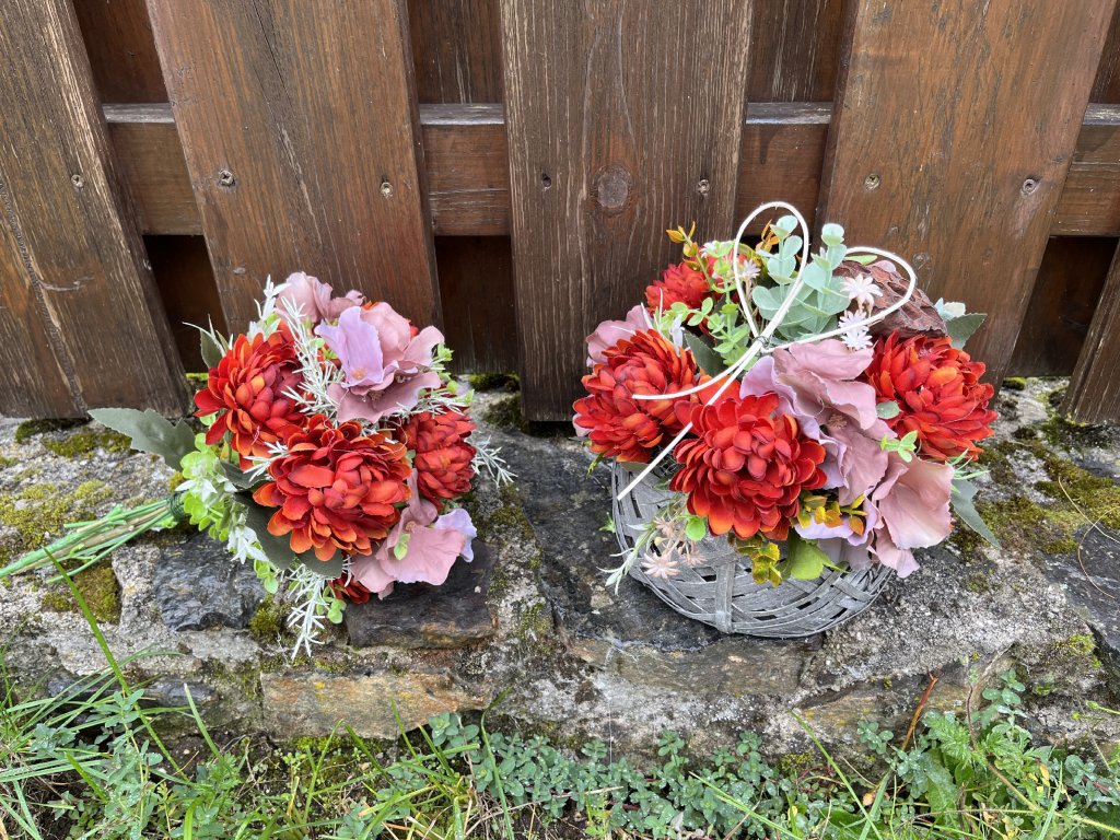 Dušičky dekorace na hrob a kytice z umělých květin