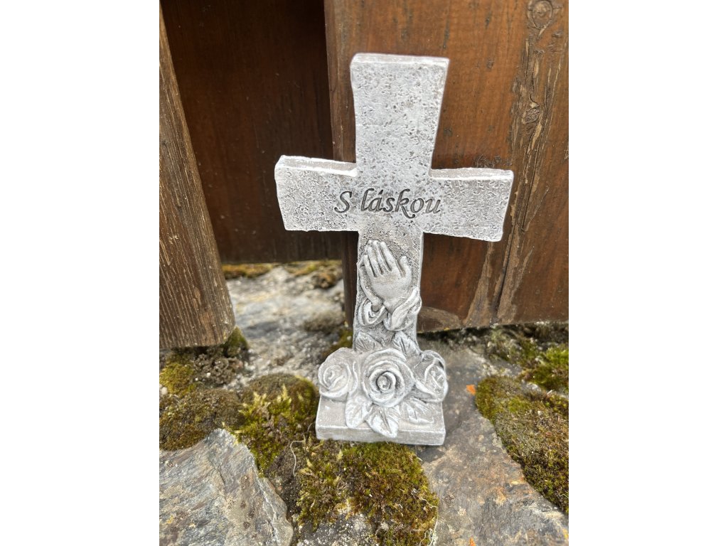 Dušičky Srdce na hrob s květinami a kříž na postavení s nápisem
