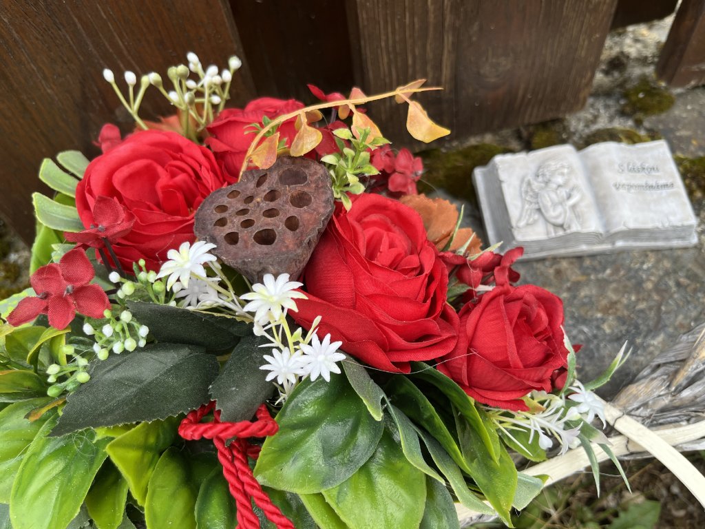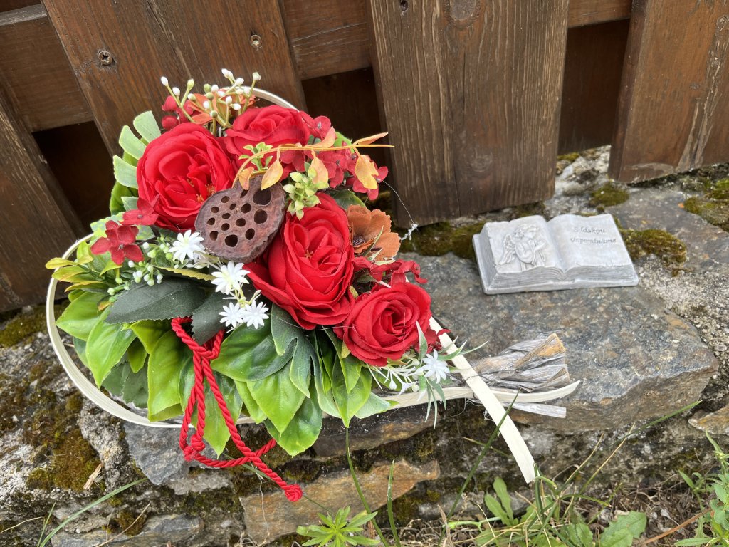 Dušičky - srdce s růžemi a dekorace na hrob kniha