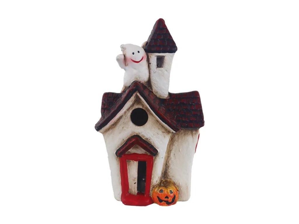 🏚️ Halloweenský keramický domeček s LED světýlkem – 18 cm
