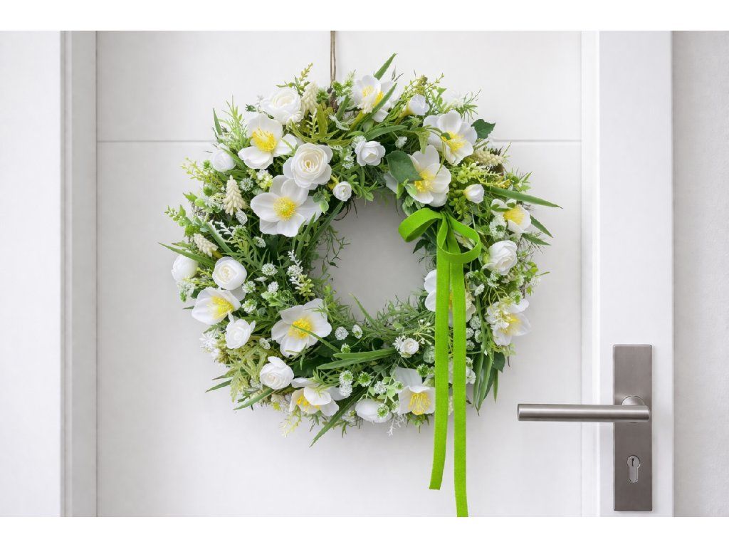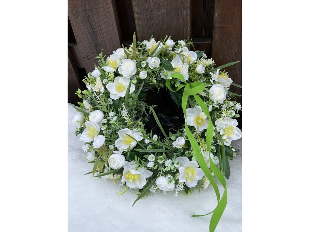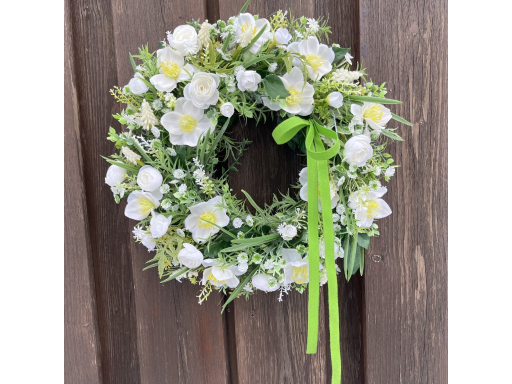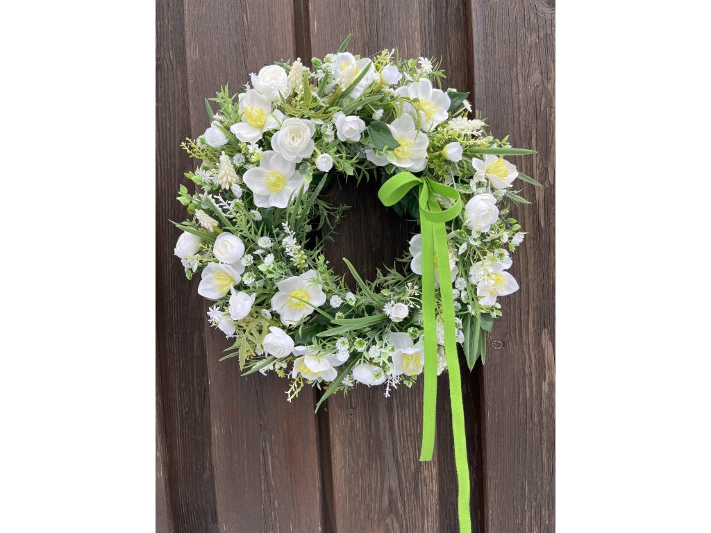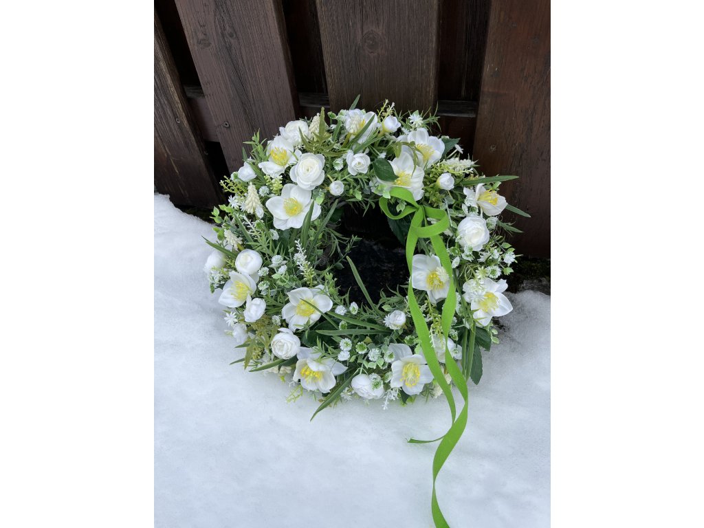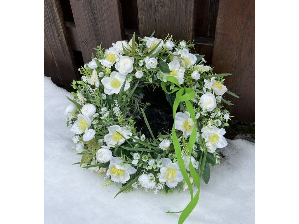 Jarní věnec na dveře s čemeřicemi 38 cm