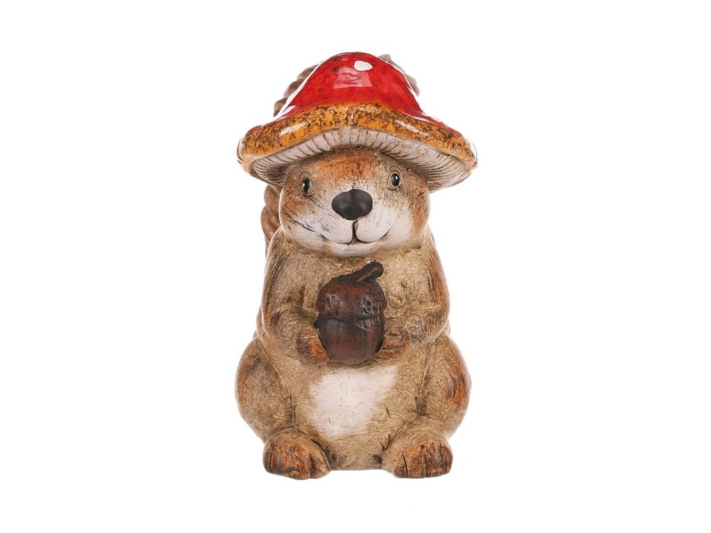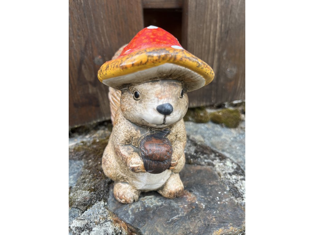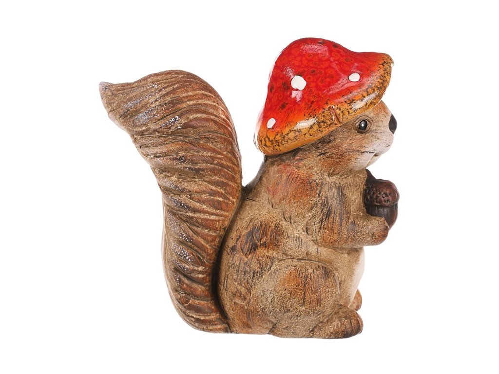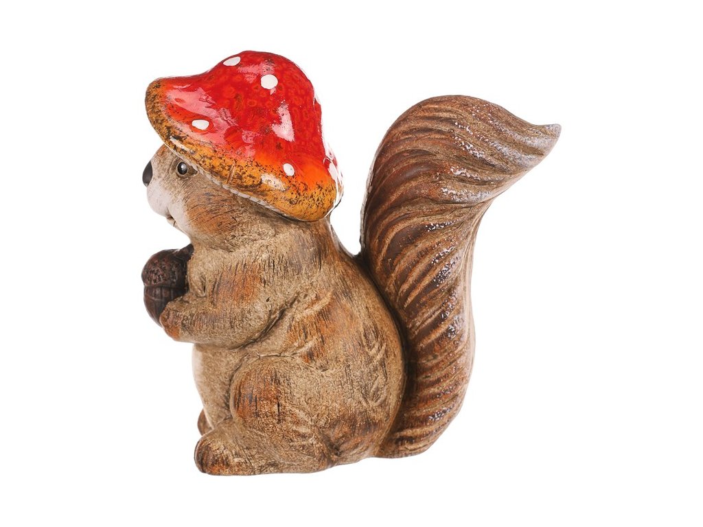 Podzimní dekorace – keramická veverka s muchomůrkou (13 cm)
