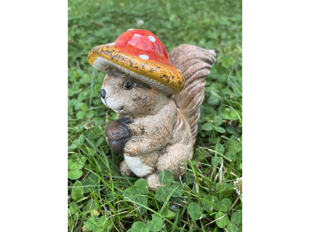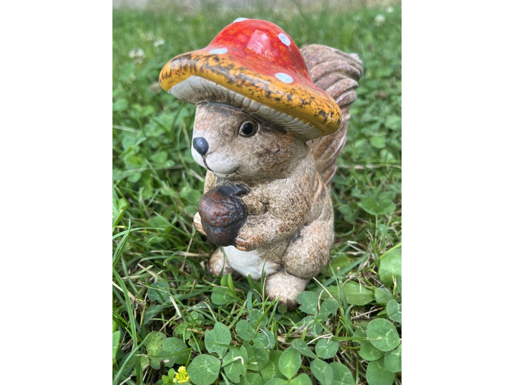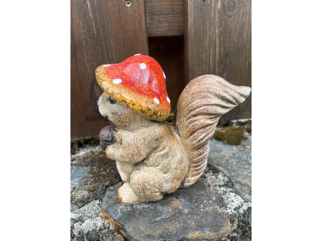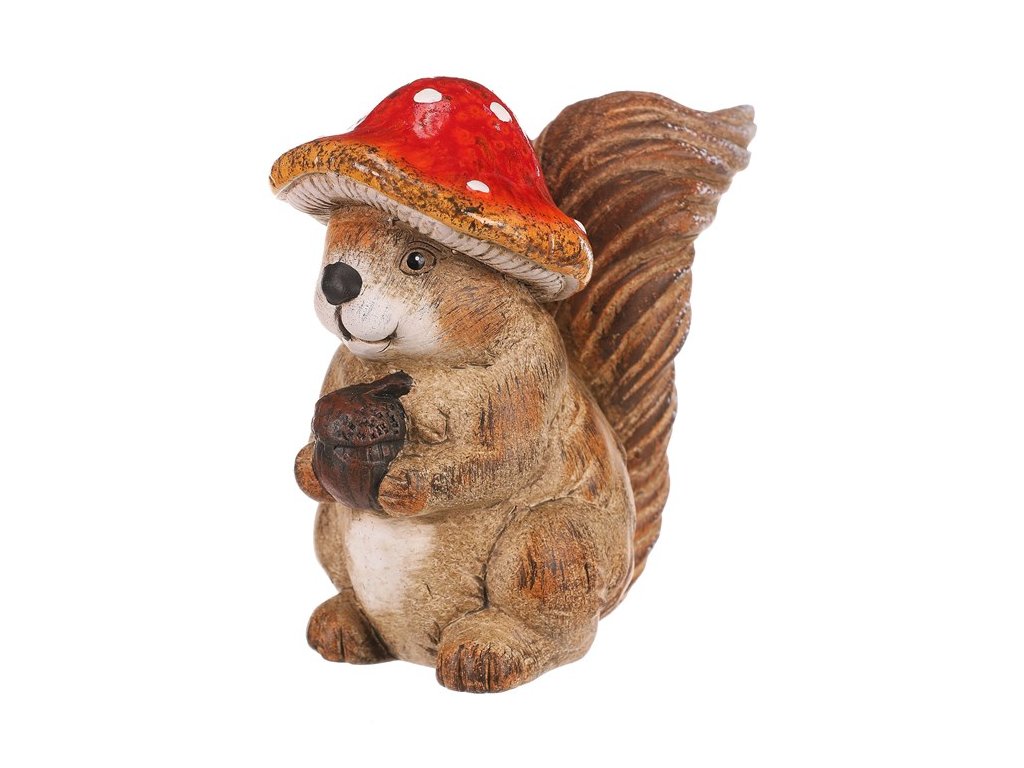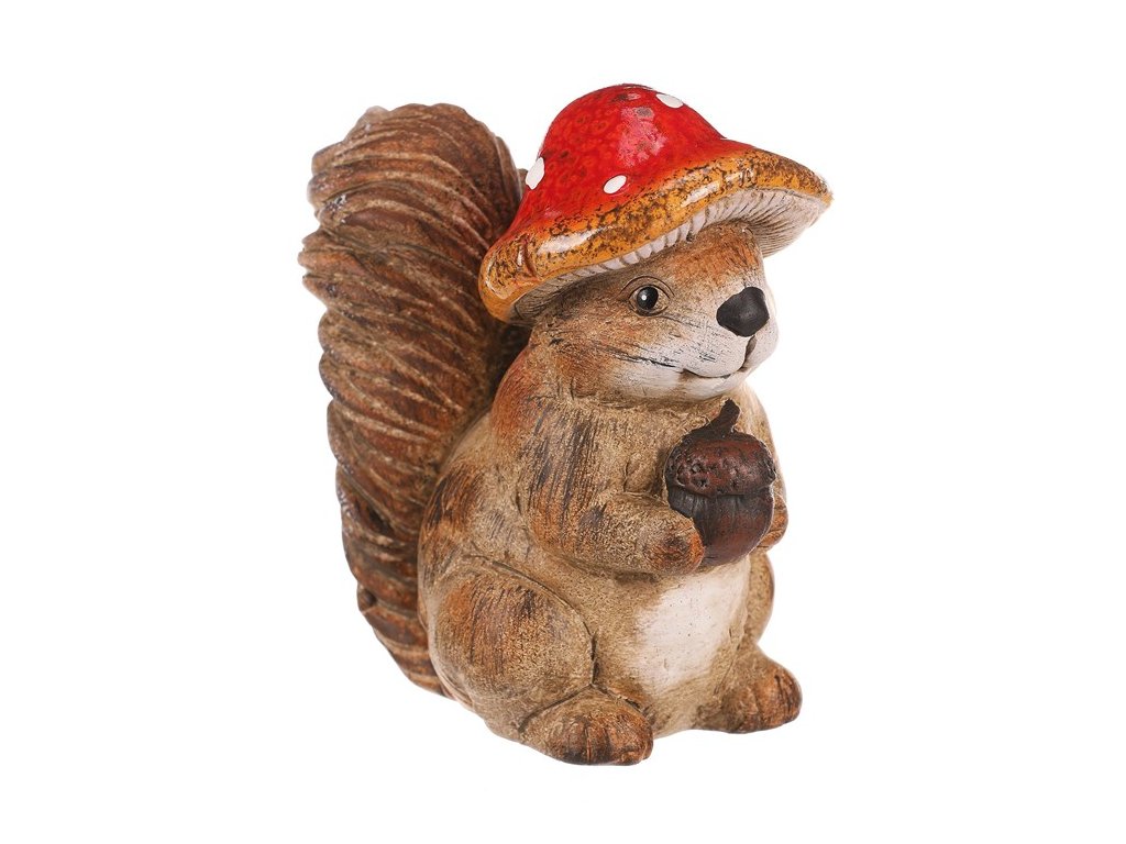 Podzimní dekorace – keramická veverka s muchomůrkou (13 cm)