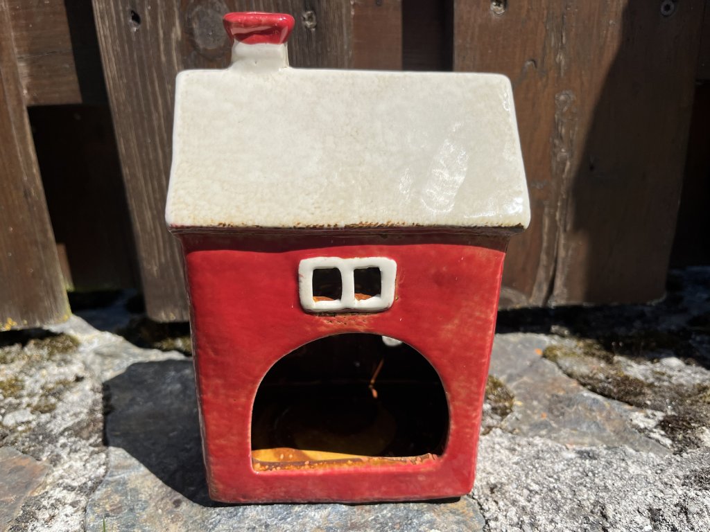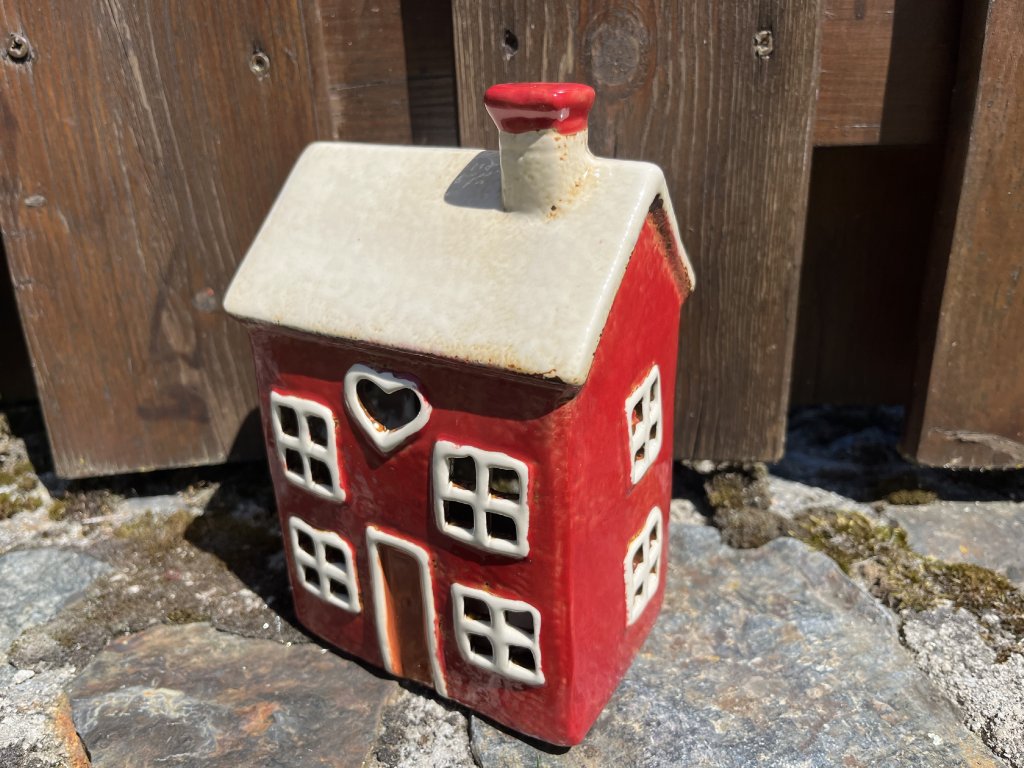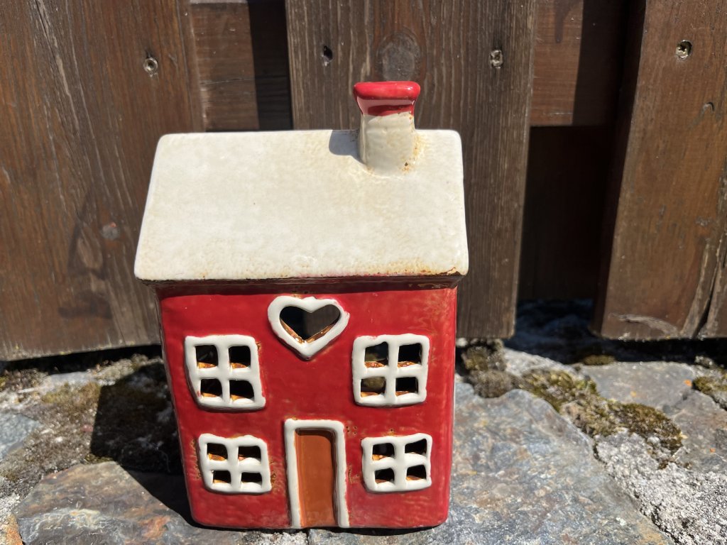 Keramický domek na čajovou svíčku červený se srdíčkem