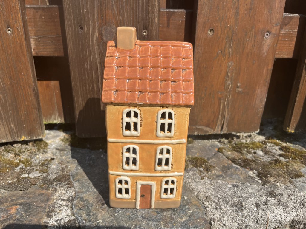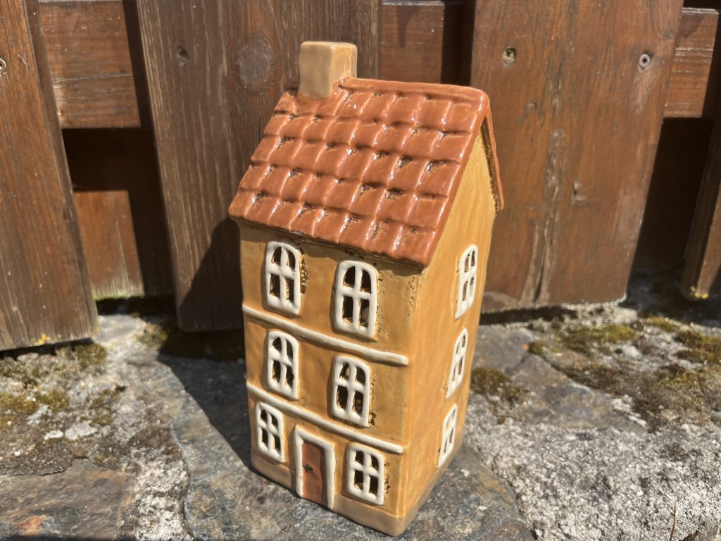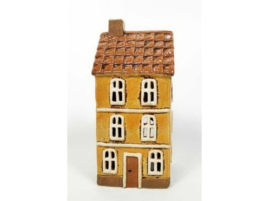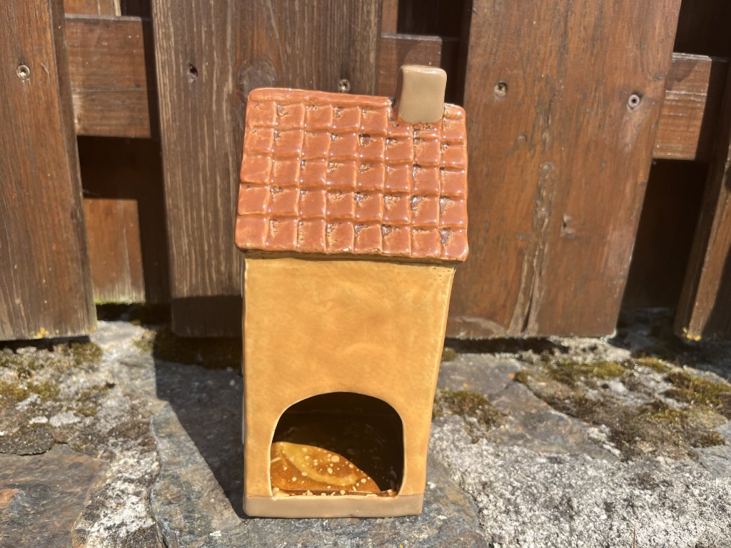 keramický svícen, domeček na čajovou svíčku, keramický domek hnědý, svícen ve tvaru domečku, dekorace do bytu, světelné městečko, romantický svícen