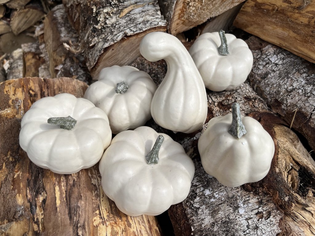 Podzimní dekorace – bílé plastové dýně (6 ks)