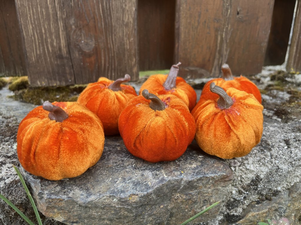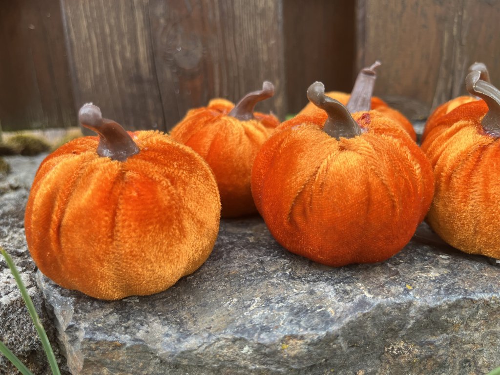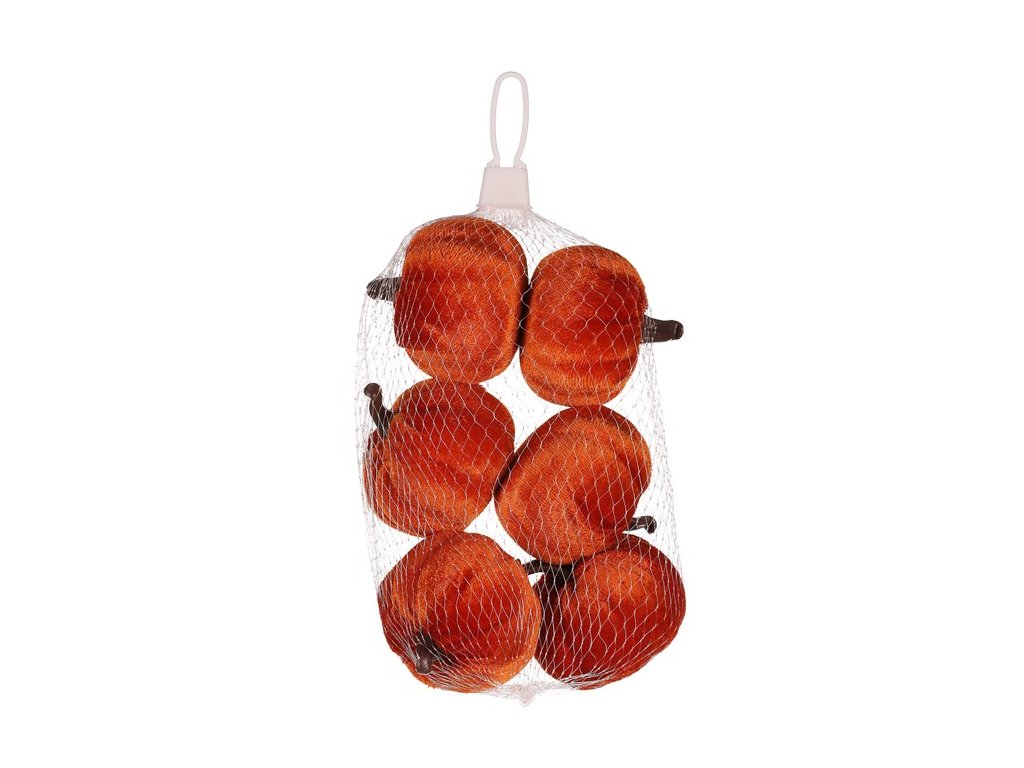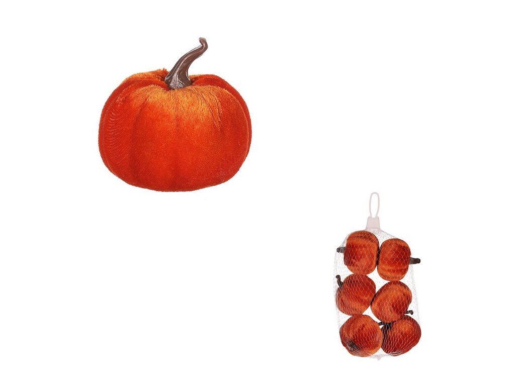 Oranžová semišová dýně – dekorace pro podzimní aranžmá - balení 6 ks