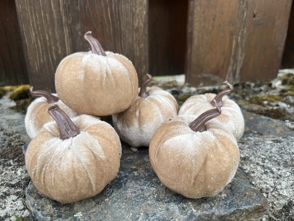 Vytvořte si doma nebo na chalupě jedinečné podzimní zákoutí s těmito jemnými a krásně laděnými semišovými dýněmi v barvě cappuccino.