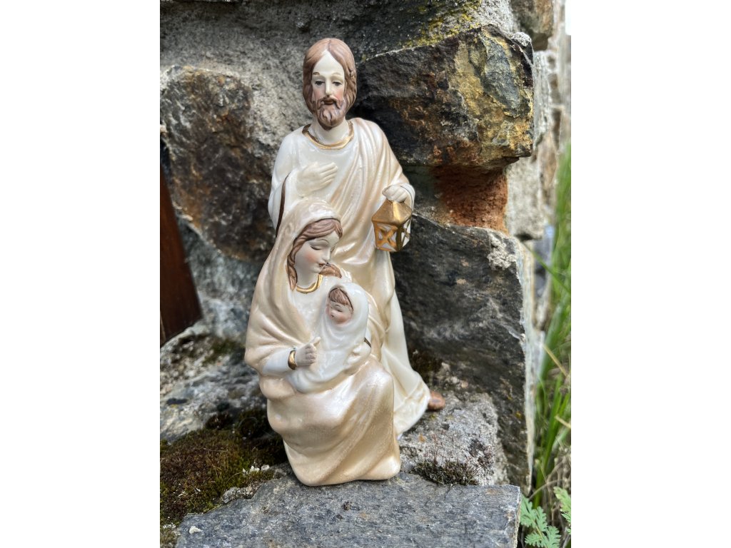 Přiveďte do svého domova kouzlo Vánoc s touto elegantní porcelánovou soškou betlému znázorňující Svatou rodinu s Ježíškem. Tato vánoční dekorace na postavení v kombinaci jemných béžových a bílých odstínů představuje symbol narození a přináší do interiéru pocit klidu, pokory a sváteční pohody.