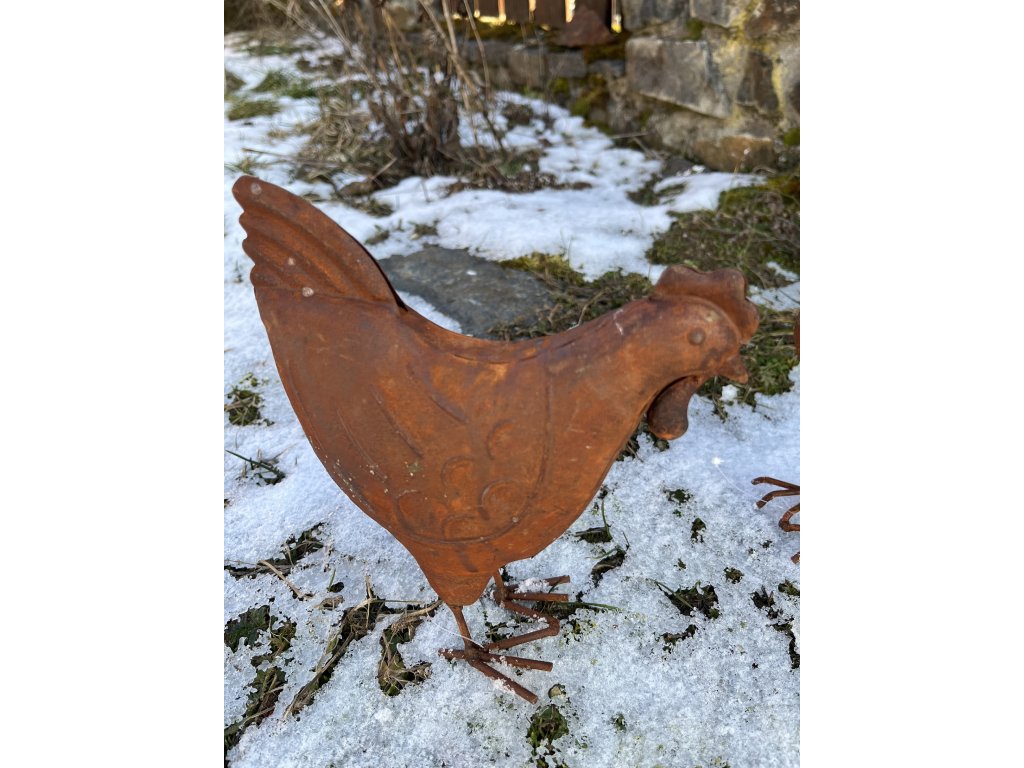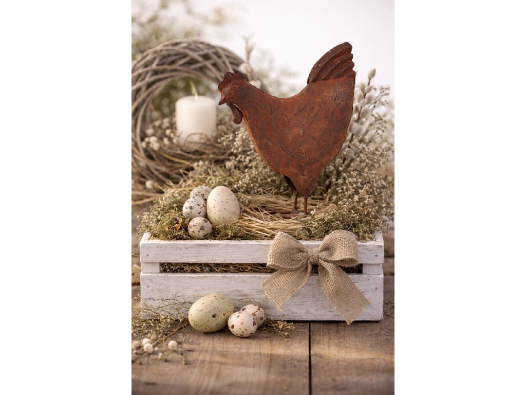 Rezavá kovová slepice jarní dekorace