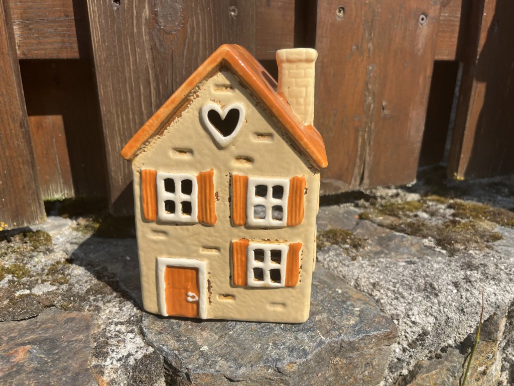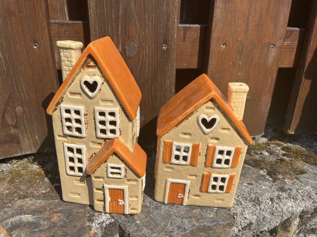 sada keramických svícnů, keramický domeček, svícen na čajovou svíčku, keramický svícen domeček, domeček se srdíčkem, dekorace do bytu, světelné městečko, romantický svícen, útulná dekorace