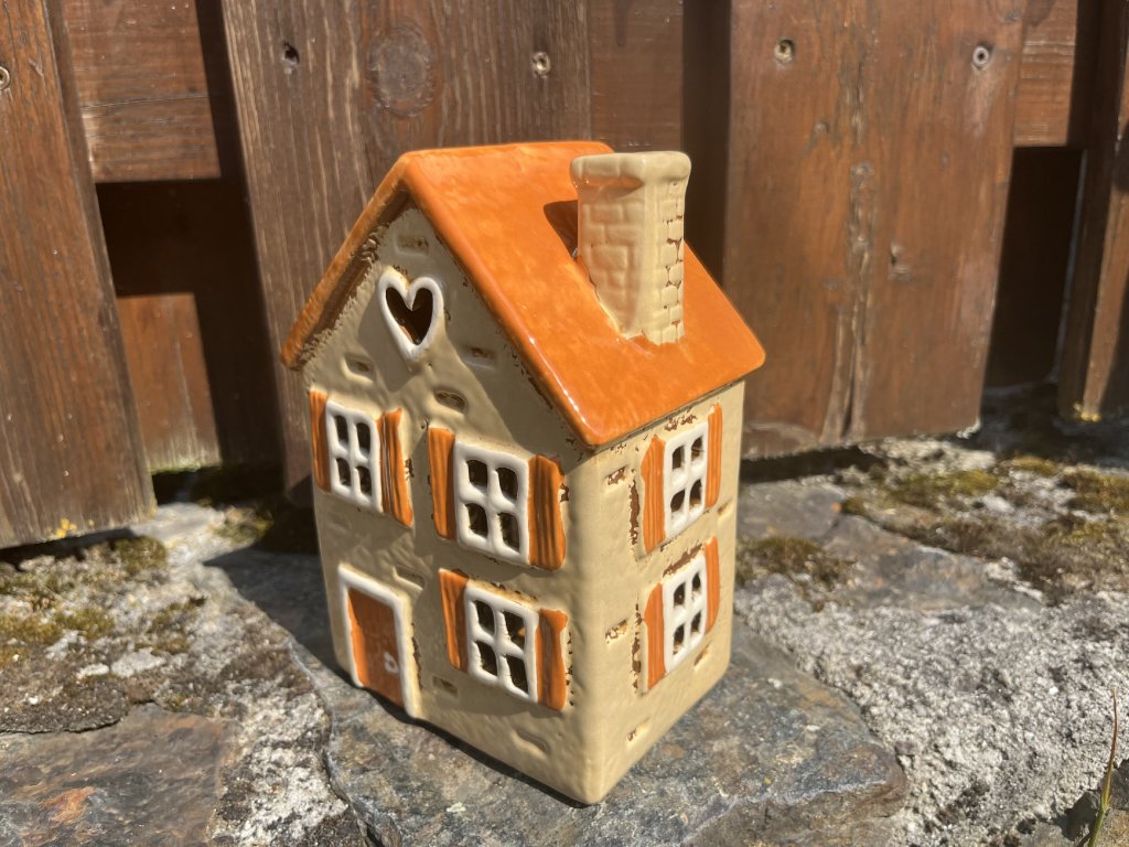 Domeček vyšší: výška 21,5 cm, šířka 11,5 cm, hloubka 10 cm