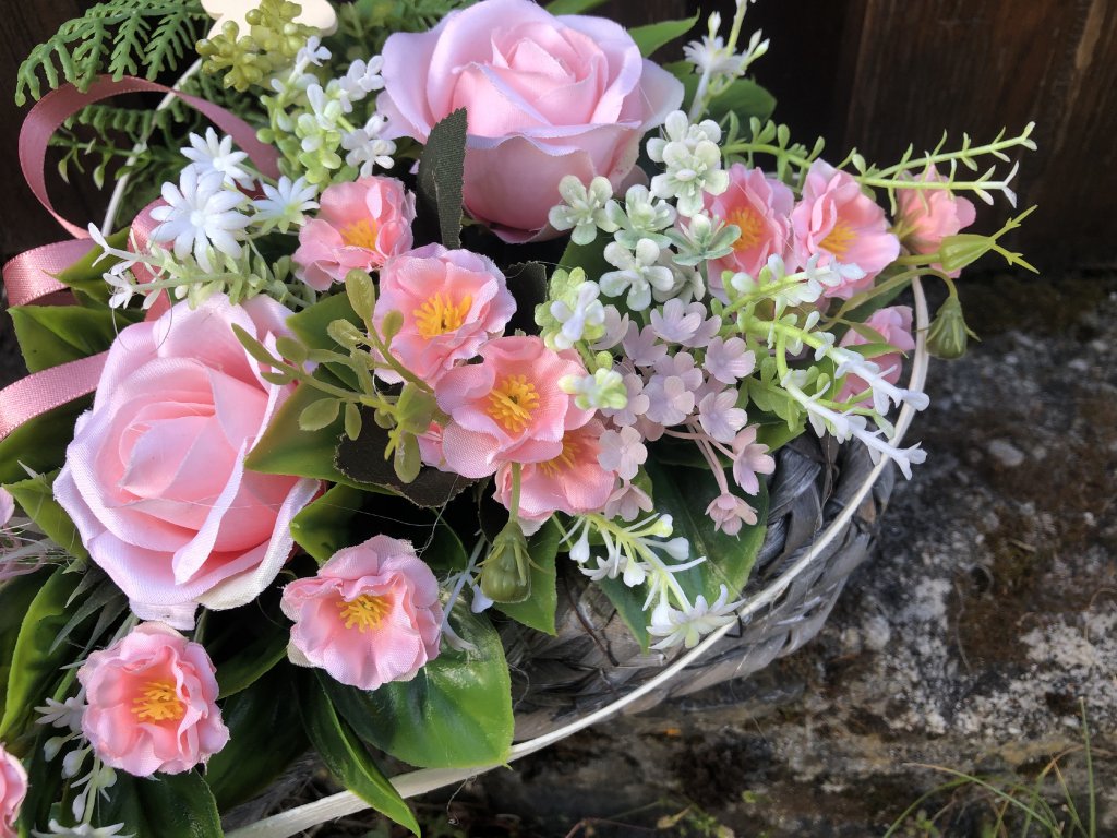 Materiál: proutí, textilní a plastové květiny, ratan, dřevo