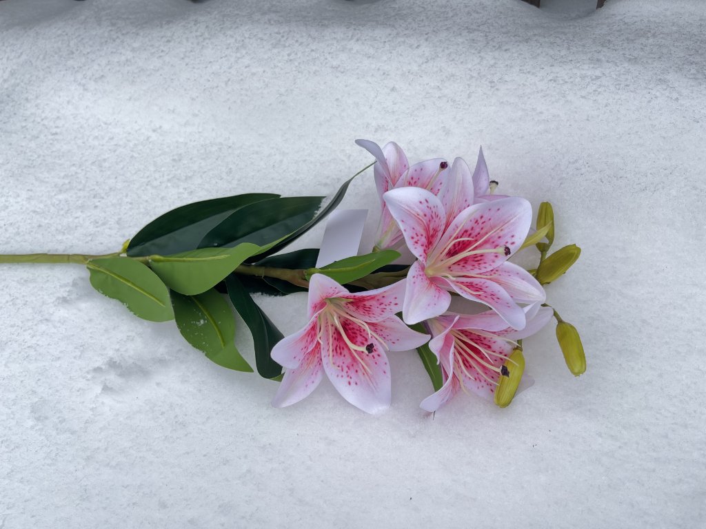Na jednom stonku se nachází 5 květů a poupata, které dodávají lilii bohatý a plný vzhled. Jemná kombinace růžových a bílých tónů přináší do interiéru pocit lehkosti, elegance a svěžesti. Umělá lilie si zachovává svůj krásný vzhled po dlouhou dobu bez nutnosti údržby.
