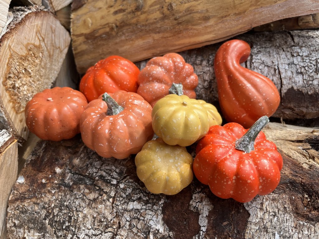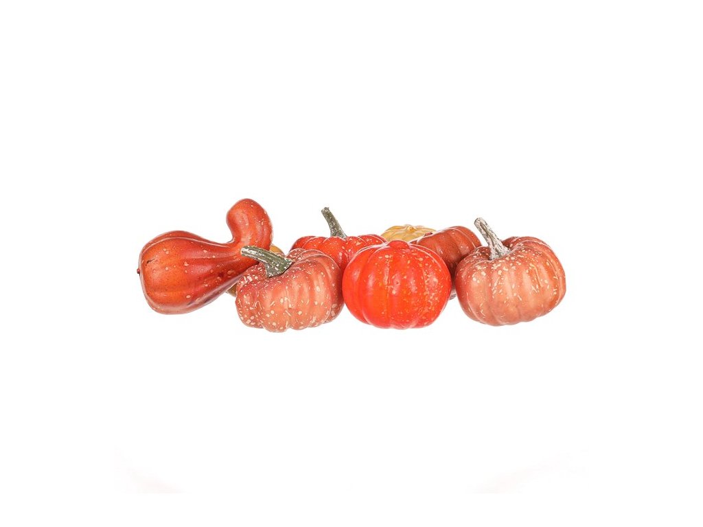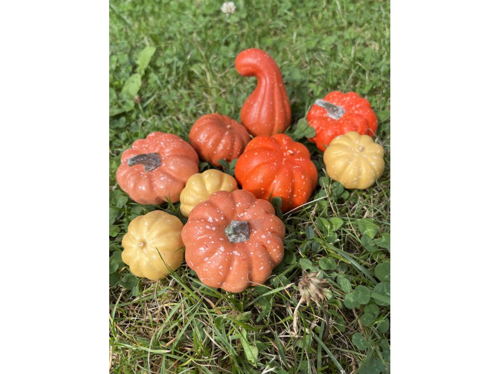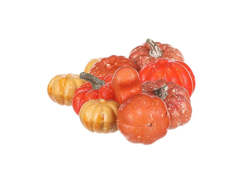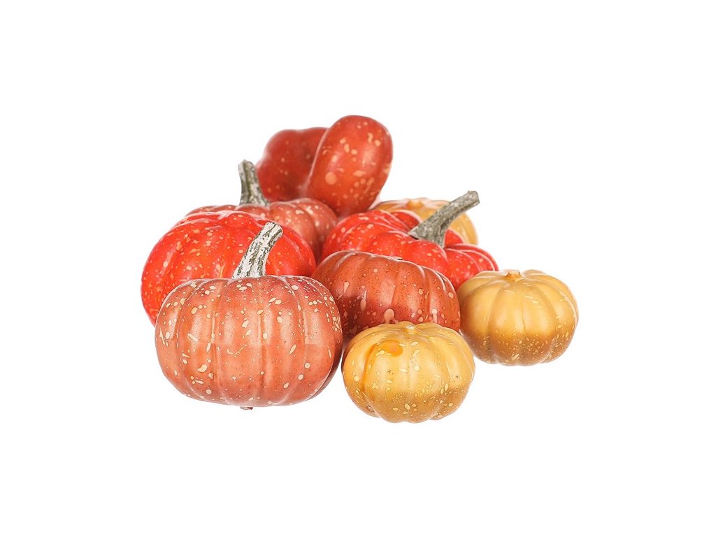 Podzimní dekorace – umělé plastové dýně 9 ks (žluté, oranžové, cihlově červené)