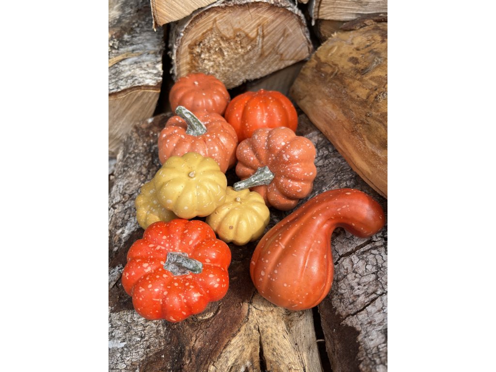 Tyto dekorativní dýně jsou ideální pro aranžování do věnců, podzimních truhlíků, květináčů, nebo je můžete volně položit na stůl, polici či parapet. Symbolizují období úrody a sklizně, kdy příroda hraje všemi odstíny teplých barev.