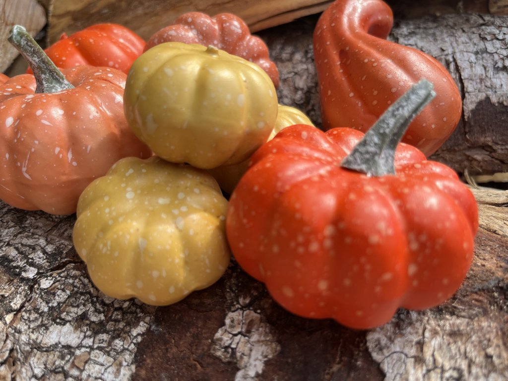 Tyto barevné umělé dýně jsou nenáročným a efektním způsobem, jak vnést podzim do vašeho interiéru či dekorace bez nutnosti péče.