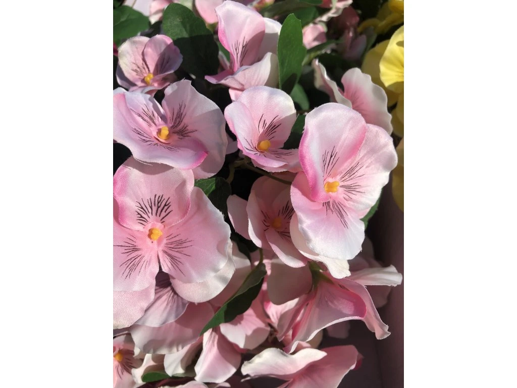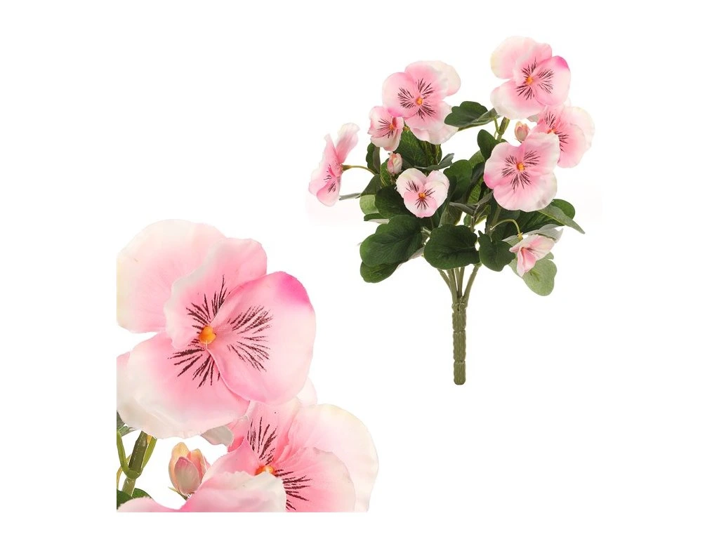 Umělé macešky ve světle růžové barvě jsou krásnou jarní umělou květinou.
