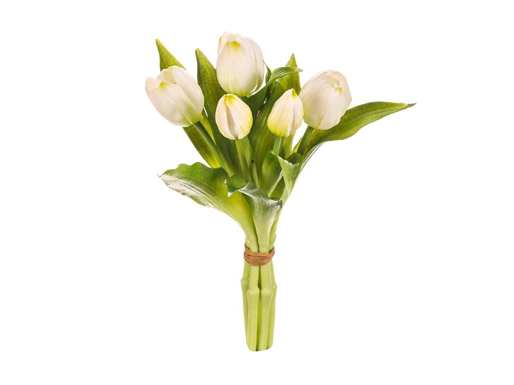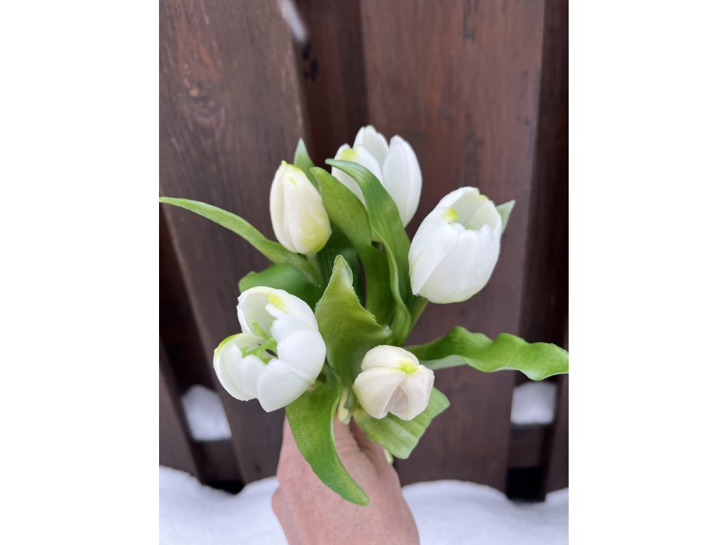 Umělé tulipány bílé kytice 27 cm