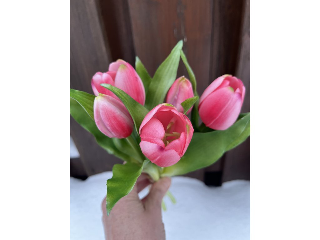 Umělé tulipány růžové – kytice 27 cm jsou jemnou a elegantní dekorací, která vnese do interiéru svěží a romantický nádech. Tato kytice umělých tulipánů je vyrobena z kvalitního plastu, který věrně napodobuje tvar i strukturu živých květů a listů. Díky pečlivému zpracování působí tulipány přirozeně a velmi vkusně.