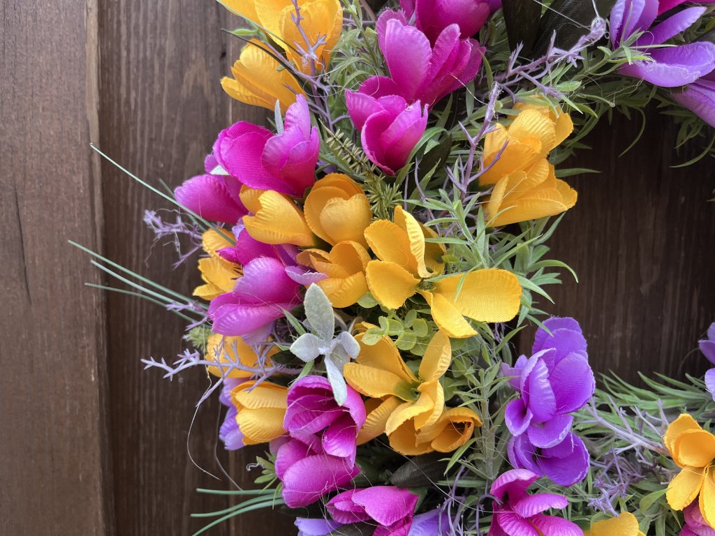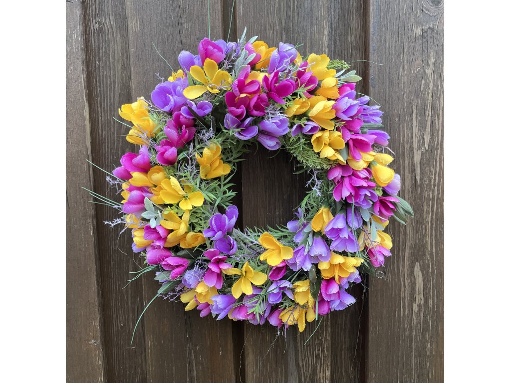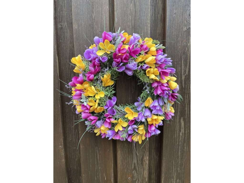 Umělý jarní věnec na dveře s krokusy 38 cm