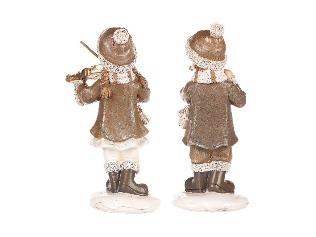 Vneste do svého domova kouzelnou atmosféru Vánoc s těmito půvabnými vánočními figurkami dětí. Dvě roztomilé postavičky, oděné do zimního oblečení, drží hudební nástroje a vypadají, jako by právě zpívaly a hrály vánoční koledu.