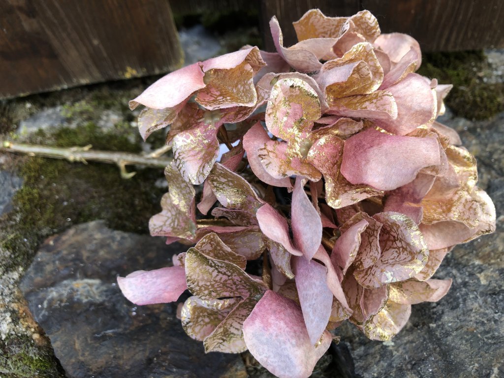 Vánoční dekorace umělá hortenzie růžovo zlatá