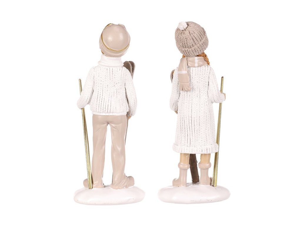 Vneste do svého domova kouzlo zimy s těmito půvabnými polyresinovými figurkami chlapce a dívky s lyžemi. Postavičky oblečené do teplého zimního oblečení v jemných béžových a bílých odstínech působí klidně a radostně, jako by se právě chystaly vyrazit na zasněžený svah.