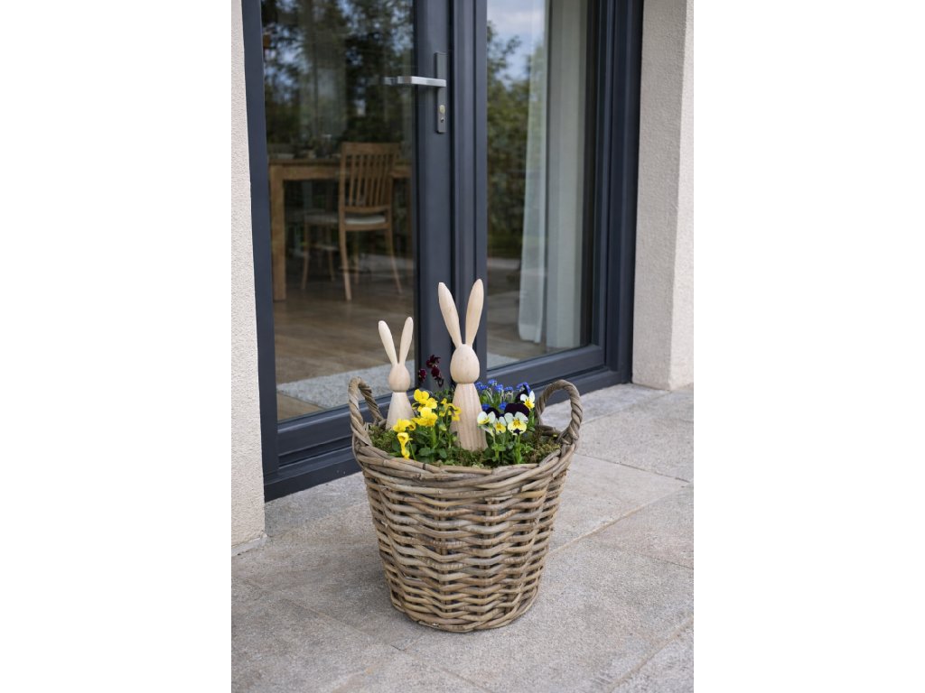 Dřevěný zajíček 24 cm je krásnou jarní dekorací do truhlíků, květináčů, dekroací na stůl.