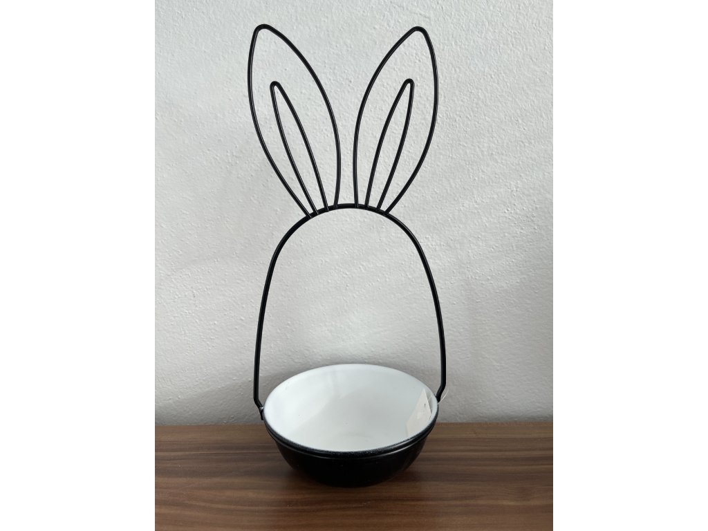 Elegantní velikonoční dekorace – kovový zajíc s miskou je stylovým a zároveň praktickým doplňkem jarní výzdoby. Černý kovový zajíc držící misku zaujme svým minimalistickým designem a hodí se jak do moderního interiéru, tak i do přírodně či rustikálně laděných prostor. Miska je ideální pro vystavení velikonočních vajíček, drobných dobrot nebo dekorativních aranžmá.