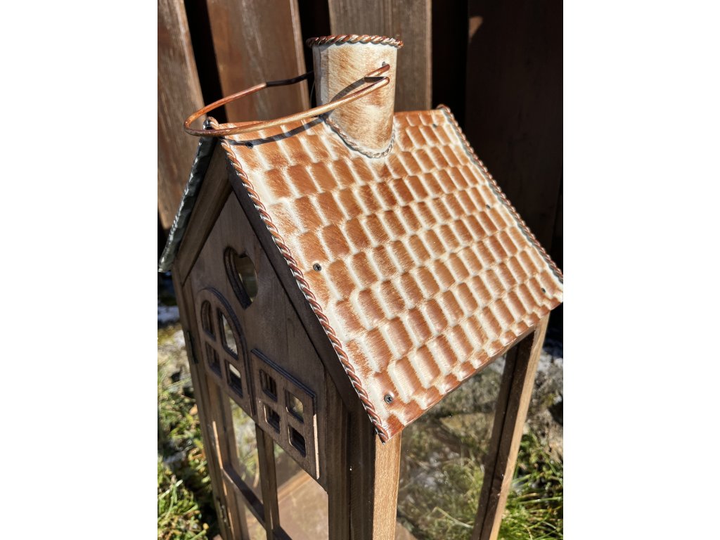 NOVINKA Velká dřevěná lucerna hnědá 56 cm