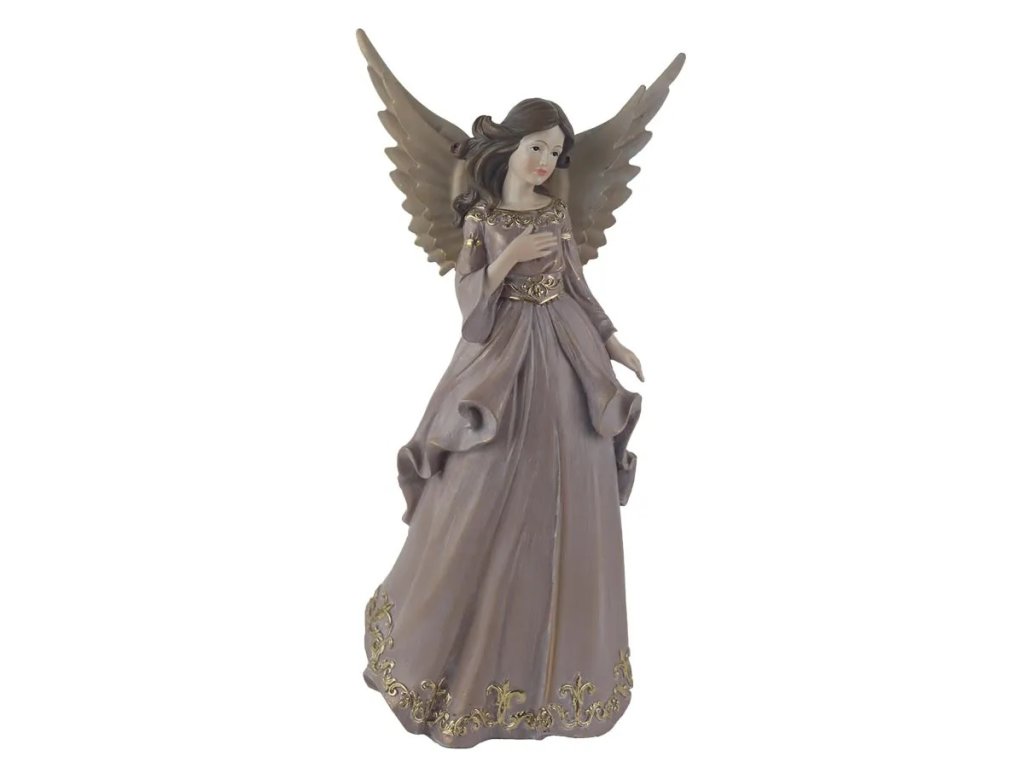 Velký anděl v hnědé barvě – dekorační soška 32 cm